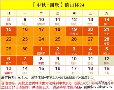 中秋國慶連休24天請(qǐng)假攻略走紅